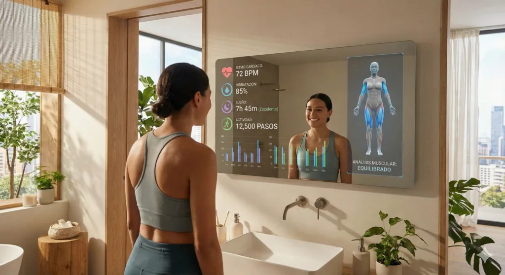 Los AI mirrors, o espejos con inteligencia artificial, son dispositivos que combinan cámaras, sensores y modelos avanzados de IA para interpretar lo que ocurre frente a ellos y devolver esa información en tiempo real.