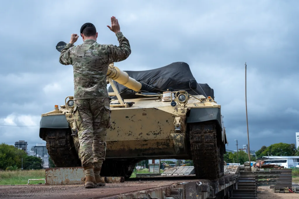 A propósito, una de las postales que dejó la carga de los blindados del Ejército en Trenes Argentinos es el traslado del TAM 2C-A2, el emblemático tanque modernizado por la Fuerza.
