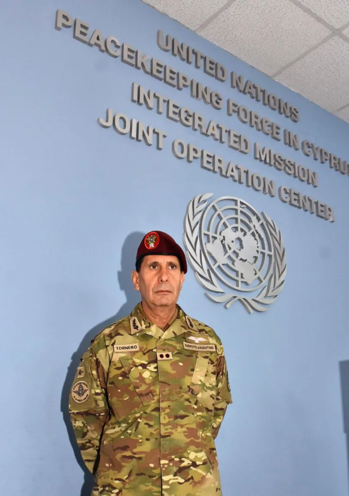 En esa escena, entre puestos de observación y patrullas a lo largo de la línea que divide la isla desde hace más de cinco décadas, la diferencia entre ejercer el mando y ejercer el liderazgo se convierte en una práctica concreta. En una pausa, Tornero charla con DEF. “Antes de responder, quisiera expresar el orgullo personal de que, del Comando Operacional a mi cargo, dependa la instrucción, preparación y certificación del despliegue que el país realiza a cualquier misión de Paz”, adelanta, no sin antes detallar que el contacto con el personal militar que está en Chipre permite percibir la situación real de los efectivos, lo que colabora con la toma de decisiones. “La placa de powerpoint, no transpira”, traduce, y añade: “En otros términos, el viaje responde a la necesidad de supervisión y órdenes, emanadas por el Ministerio de Defensa y el jefe del Estado Mayor Conjunto, de controlar la situación de la Fuerza, en apoyo a la decisión soberana de Argentina de contribuir activamente al mantenimiento de la paz, proyectando al país como un actor responsable y comprometido dentro de la comunidad internacional”.