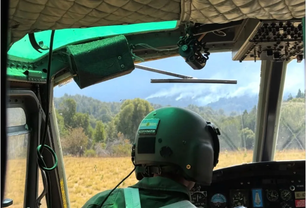 Para Albornoz, uno de los momentos más críticos vividos hasta ahora fue la operación, con seis helicópteros y un avión hidratante, en la zona de Bahía Rosales. “Gracias a la tecnología disponible en nuestras pantallas y a la aplicación de procedimientos estandarizados, se desarrolló de forma segura. Los dos Bell 407 GXi trabajamos integrados en un “carrusel” coordinado, cronometrando recargas y lanzamientos con precisión. Esta es nuestra primera experiencia utilizando helibalde en montaña con este sistema de armas de reciente adquisición: a mi sección, esta aeronave arribó en diciembre de 2025”, contó, no sin antes confesar el orgullo que le genera ver al Ejército Argentino en este tipo de misiones.