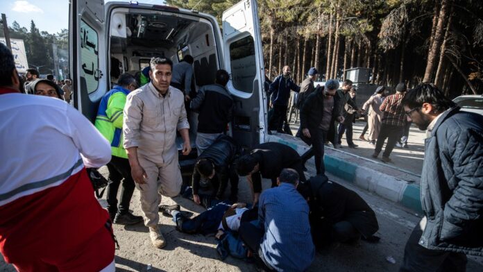 El ataque, en dos ubicaciones cercanas al lugar en el que se realizaba la ceremonia en honor a Soleimani en el cementerio de Kerman, dejó como consecuencia 84 muertos y múltiples heridos.