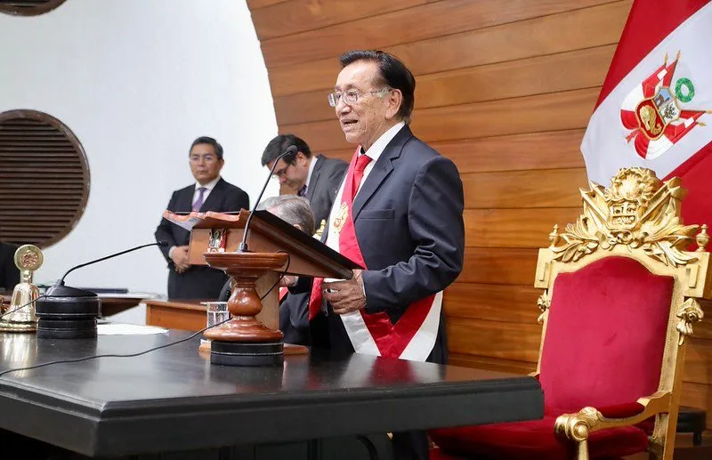 El nuevo presidente interino es un experimentado jurista, de 83 años, cuyo ingreso en política se dio recién después de las elecciones de 2021, cuando obtuvo su escaño en el Congreso por el departamento de Lambayeque. Integró las listas del partido que llevó al gobierno a Pedro Castillo, detenido tras su fallido intento de autogolpe en diciembre de 2022 y condeando a once años y cinco meses de prisión.