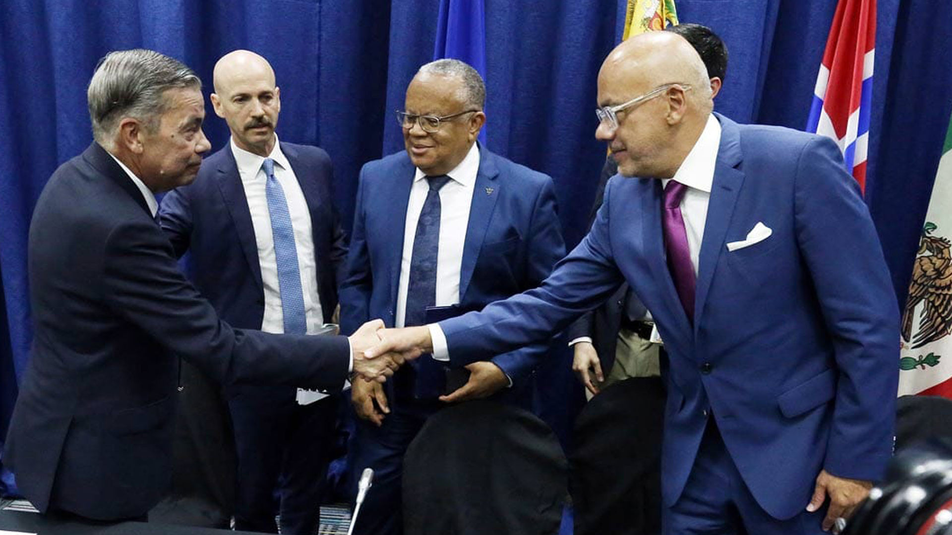 Representantes de Estados Unidos, Barbados, Noruega, Países Bajos, Rusia, México, Colombia y Brasil habían oficiado de mediadores en el diálogo. El gobierno estadounidense también solicitó que se restablezcan todas las candidaturas de la oposición, entre ellas la de María Corina Machado, inhabilitada por apoyar la presidencia interina de Juan Guaidó en 2015 y las sanciones estadounidenses.