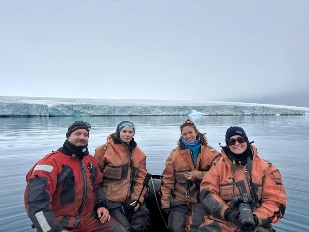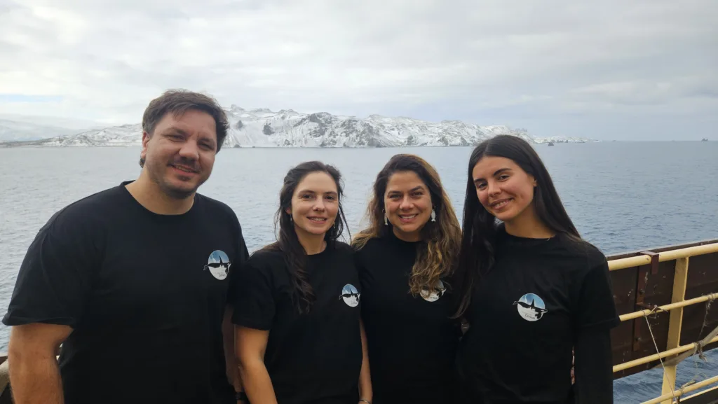 Las investigaciones en los océanos australes de la Antártida se llevan a cabo a bordo del rompehielos A.R.A. Almirante Irízar (RHAI), el único buque con capacidad para operar en esa región polar. El grupo de trabajo está integrado por Miguel Iñíguez, responsable del proyecto, Eliana Zuazquita, Nicolás Valese y Joel Diaz (Fundación Cethus), Sofía Harmacij (Universidad del Comahue), Amanda Giacomo (Jubarte Lab, Brasil) y Rafaela Faria de Souza (Instituto Baleia Jubarte, Brasil).