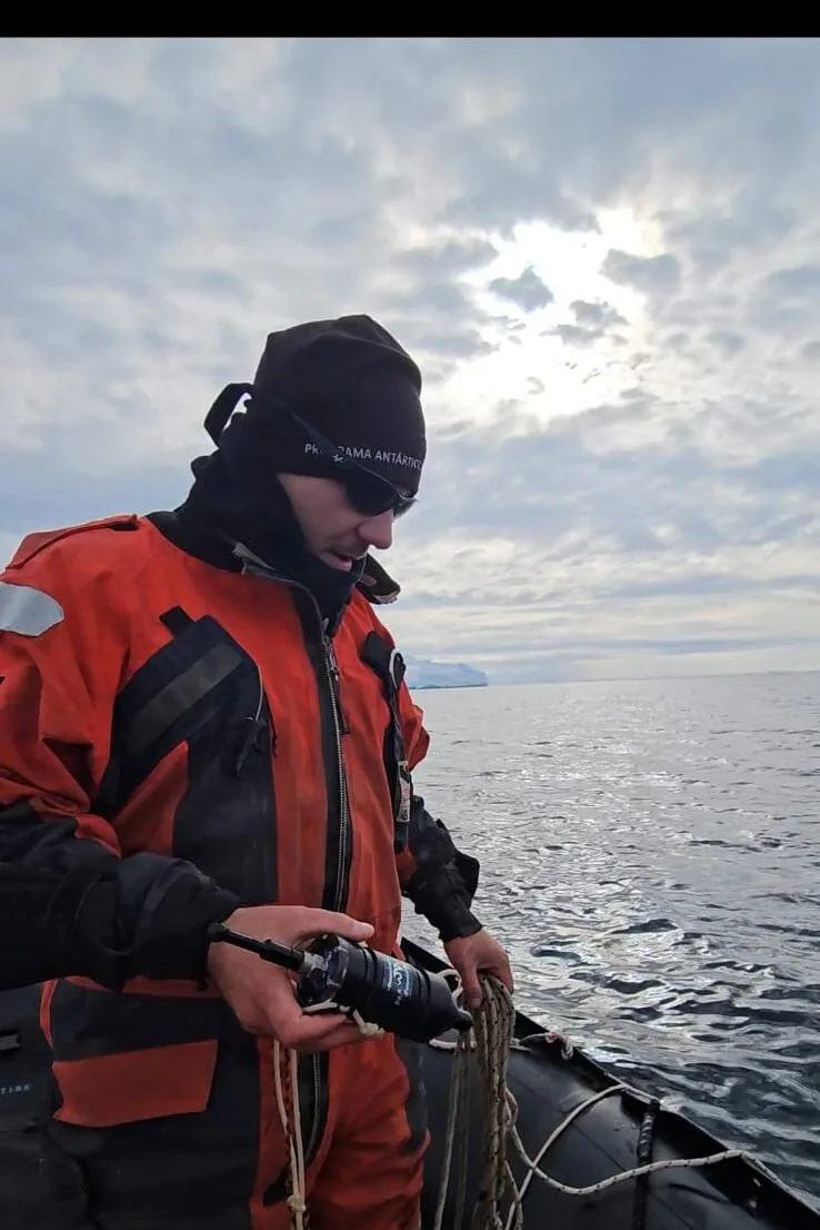 Cuando el buque se encuentra fondeado en las proximidades de una base para realizar el abastecimiento, realizamos relevamientos acústicos en bote. Cada salida dura alrededor de 4 horas y, aunque implica mayor exposición y requiere más resistencia al frío, resulta menos exigente en términos de duración e intensidad del trabajo.